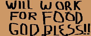 It was an unusually cold day for the month of May. Spring had arrived and everything was alive with color. But a cold front from the North had brought winter's chill back to Indiana. I sat with two friends in the picture window of a quaint restaurant just off the corner of the town square. The food and the company were both especially good that day. As we talked, my attention was drawn outside, across the street. There, walking into town, was a man who appeared to be carrying all his worldly goods on his back. He was carrying a well-worn sign that read, "I will work for food."